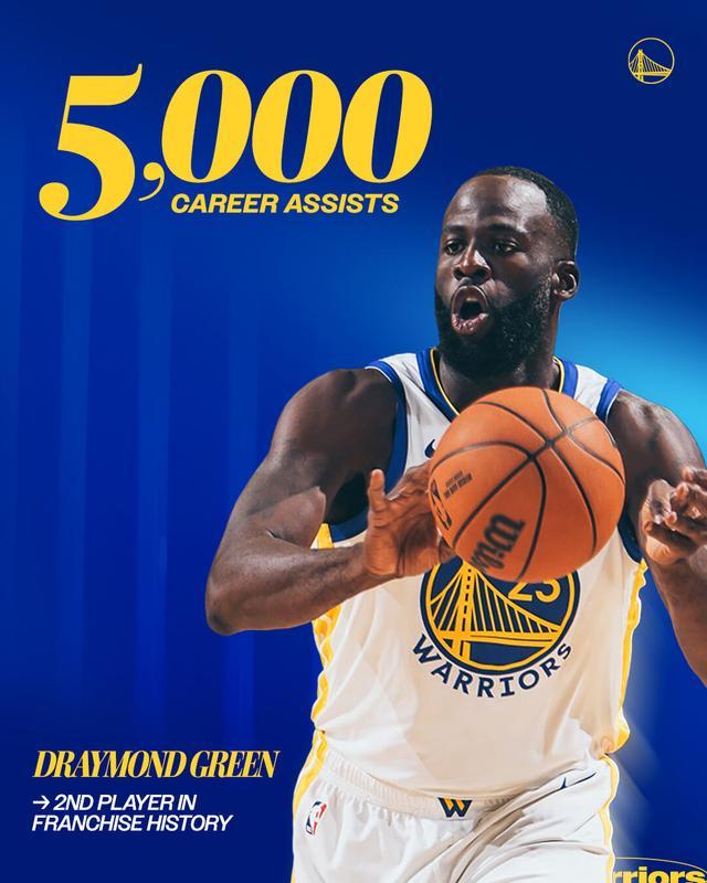 勇士队史助攻榜第二人!追梦达成生涯5000次助攻里程碑 -