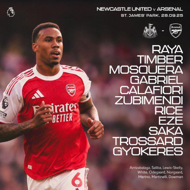 英超第6轮压轴大战,阿森纳作客纽卡斯尔联,赛前双方公布首发。 纽卡首发:波普、博特曼、若埃林通、托纳利、戈登、佳夫、利夫拉门托、墨菲、沃尔特马德、丹·伯恩、吉马良斯(队长) 替补:拉姆斯代尔、特里皮尔、拉塞尔斯、巴恩斯、克拉夫特、奥苏拉、埃兰加、威洛克、迈利 阿森纳首发:拉亚、廷伯、莫斯克拉、加布里埃尔、卡拉菲奥里、苏维门迪、赖斯、埃泽、萨卡、特罗萨尔、哲凯赖什 替补:凯帕、萨利巴、刘易斯-斯凯利、本·怀特、厄德高、内尔高、梅里诺、马丁内利、道曼